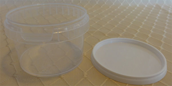 Ambalaj apicol rotund,transparent, cu capac alb, executat din polipropilena.